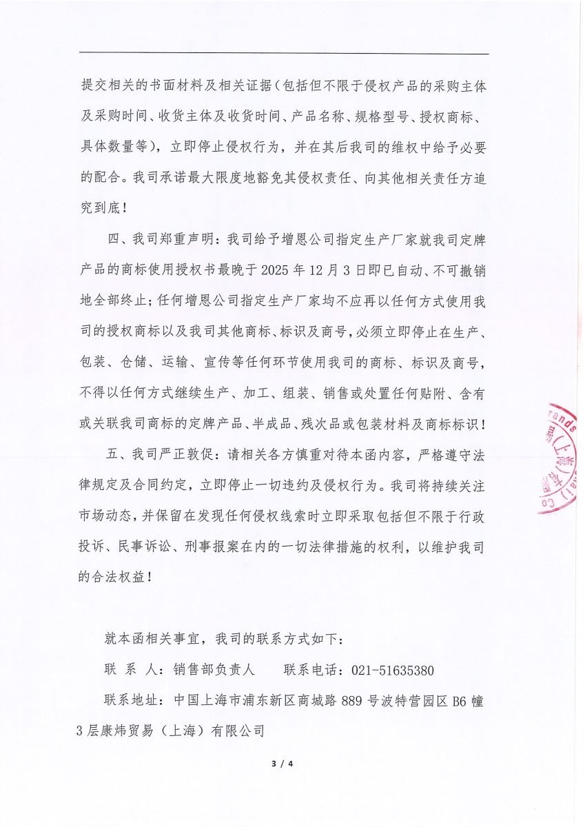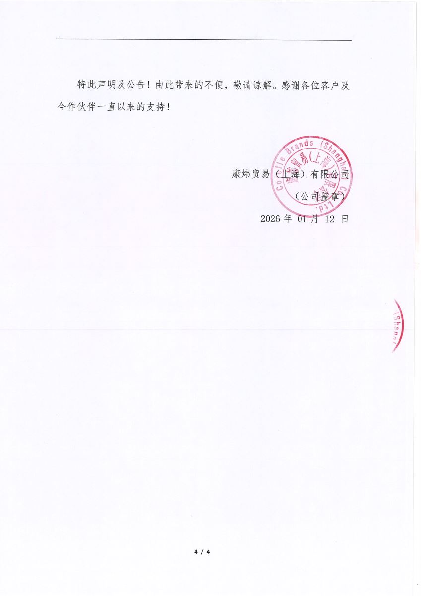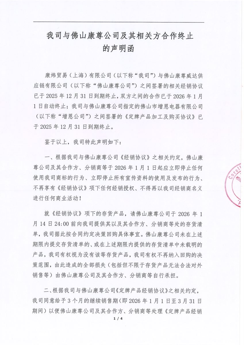 我司与佛山康尊公司及其相关方合作终止的声明函